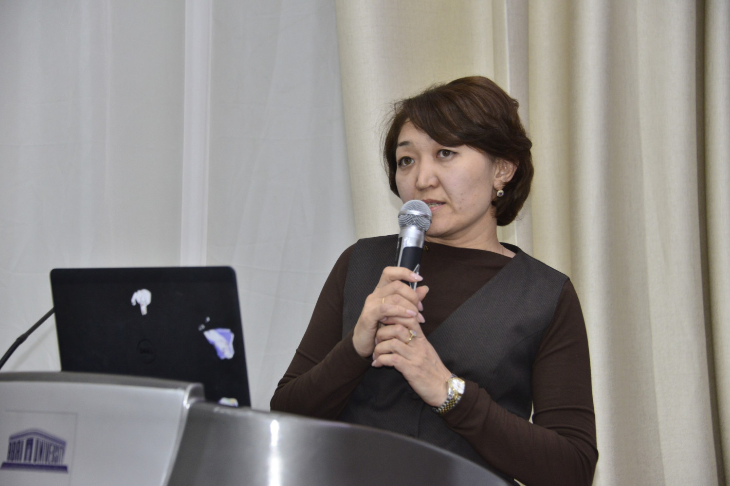 Joining the event online, certified business trainer Anar Sarsenova presented on "AI for Educators: Moving from Chaos to System." She shared insights from international practice and introduced the audience to methods of constructing academic prompt architectures. Following her, Nurken Musabayev, Vice-Rector for Digitalization, spoke on "Artificial Intelligence in Education," outlining the directions for automating the learning process, data analysis, and using AI in administrative decision-making.