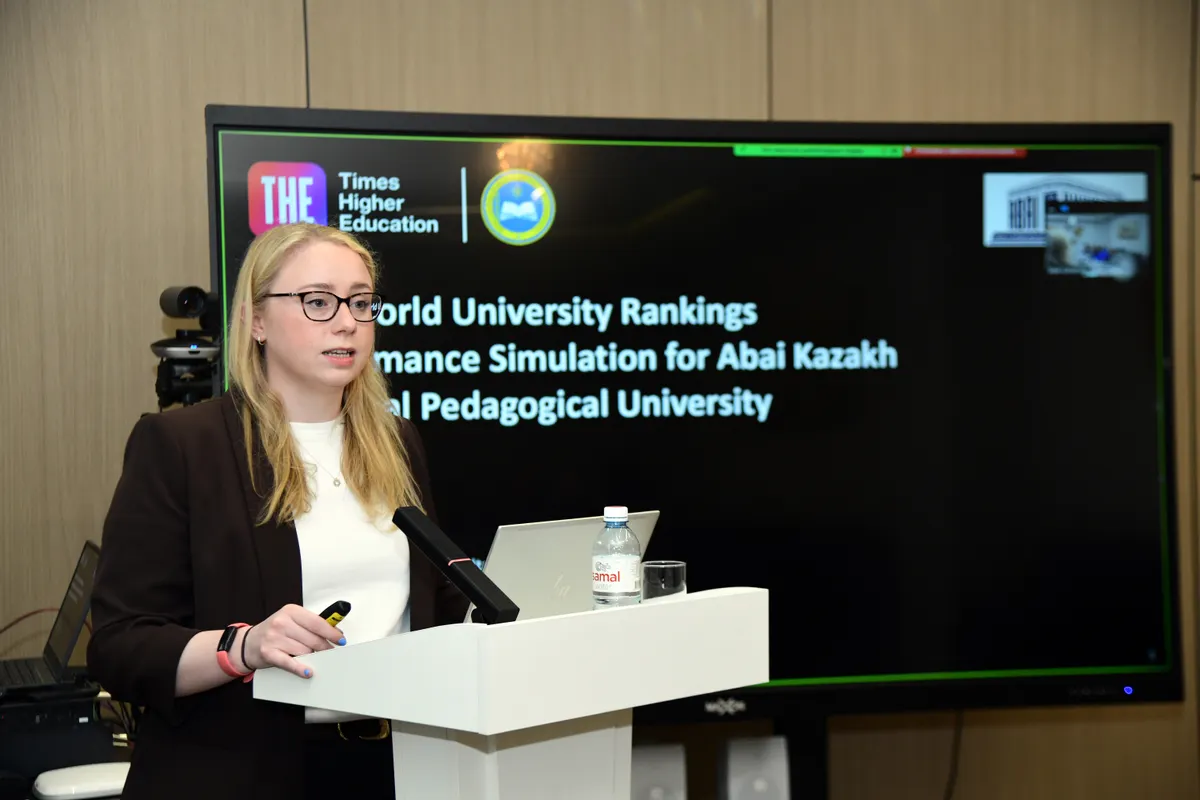 Amy Rose, Senior Consultant at THE, who visited Abai University on a special mission, presented an in-depth simulation analysis of the institution's standing in the THE World University Rankings 2026. The report examined the university's current potential and international benchmarking results in detail, identifying priority areas for growth. During the first session, attended by university leadership and the academic community, Vice-Rector Banu Narbekova emphasized that these steps fully align with the university's strategic ambitions. During the workshop, participants received effective feedback on teaching quality, research influence, and internationalization metrics, while discussing Key Performance Indicators (KPIs).