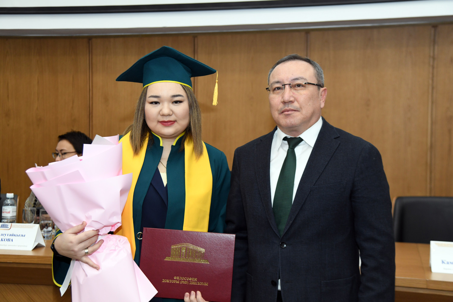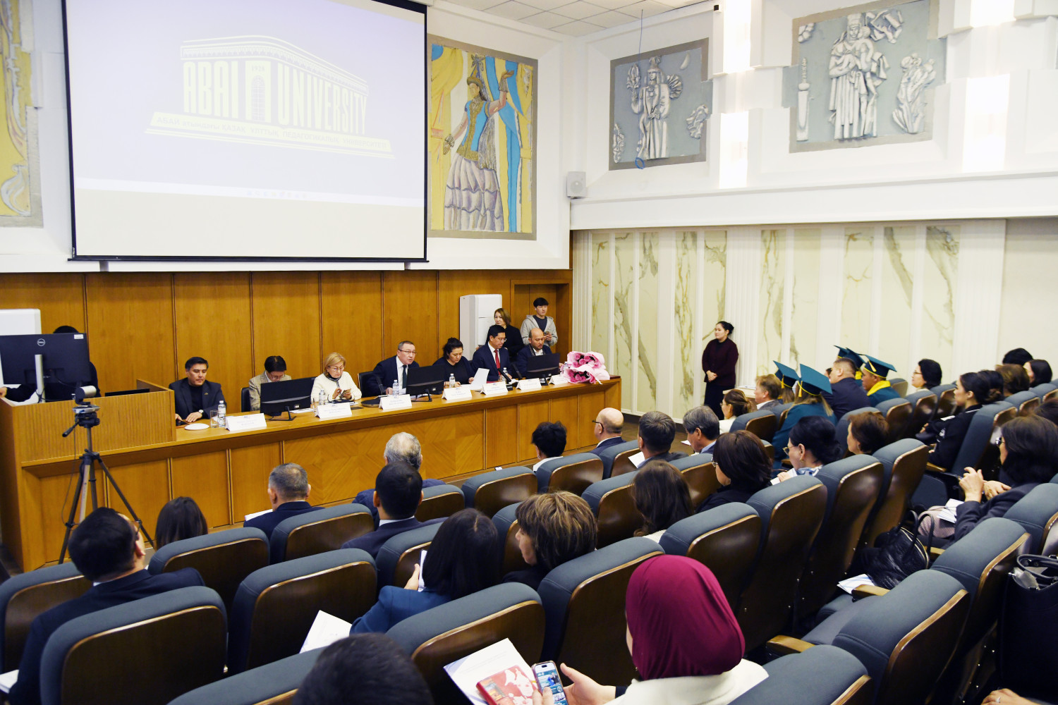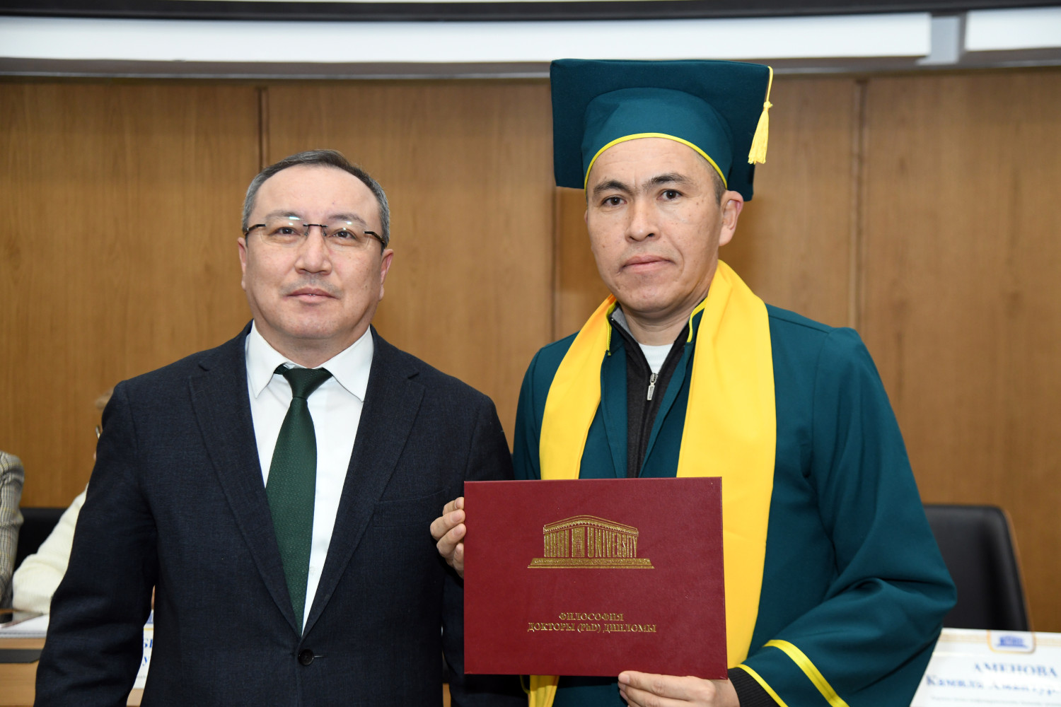 At the meeting of the Academic Council, young scientists who received PhD degrees in a number of educational programs were solemnly awarded. In particular, Baykhozhayeva Gulzhaukhar Mazhitovna ("Biology"), Aryn Yerzhan Omaruly ("Linguistics"), Musakhan Ryskul Myrzakhankyzy ("Geography"), Khorgasbai Enlik Tokhpolatkyzy ("Geography"), Nabiyev Vakil Huseynovich ("Political Science") and Yusupov Kuanyshbek Yesenbekovich ("Sociology") were awarded a PhD, Bulat Anapiyevich officially congratulated them.