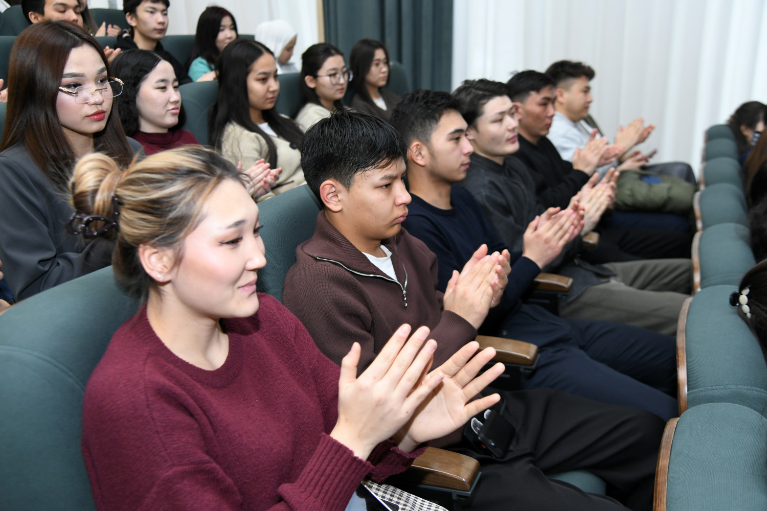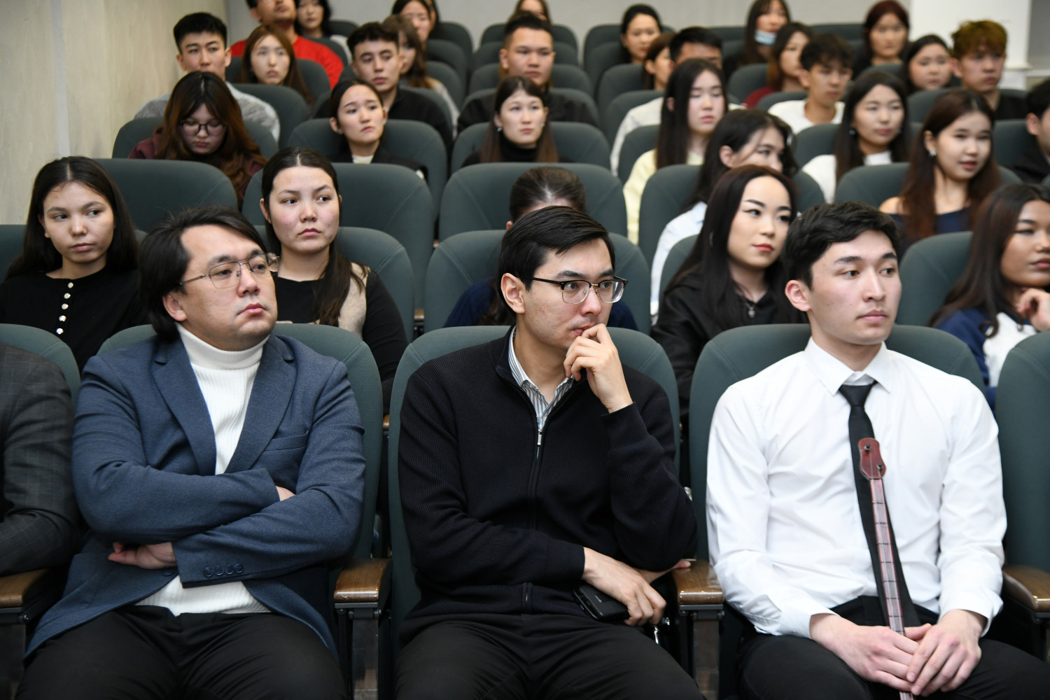 Кездесу барысында фильмнің негізгі идеясы, түсірілім үдерісі және шығармашылық ізденістер төңірегінде мазмұнды сұхбат өрбіді. Шығармашылық топ өкілдері қолайсыз ауа райында, соның ішінде 40 градус аязда кино түсірудің техникалық ерекшеліктері мен кәсіби қиындықтарына тоқталды. Сонымен қатар, кадр детальдары, фильмді бояу және монтаждау арқылы туындыға терең мағына берудің өзіндік тәсілдері туралы айтып берді. Студенттер өздерін қызықтырған сұрақтарын қойып, кино өнерінің қыр-сырына қанықты.